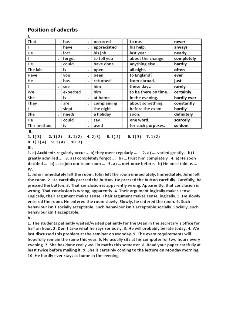 Learn the definition and useful rules of adverbs manners, ways of forming adverbs from adjectives an adverb of manner is an adverb (such as quickly or slowly) that describes how and in what way the action of a verb is carried out. Choose the correct position of the english adverbs (score the english adverbs of manner express the way an action takes place. Adverbs of manner tell us how something happens/in what way. Learn about position of adverbs rules to construct your sentences accurately. Angrily, happily, fast, slowly, well, badly, nicely, noisily, quietly, hard, softly. He quickly agreed to go to the. I slowly began to feel. Adverbs of manner are one of the most commonly used adverbs in english. The position of adverbial phrases is very flexible in english. Learn about position adverbs and word order in english grammar online with lingolia. Indeed position of adverbs in sentences common mistake among esl learners. If it is placed with the verb, it modifies the action described. For example, they accepted the offer.
