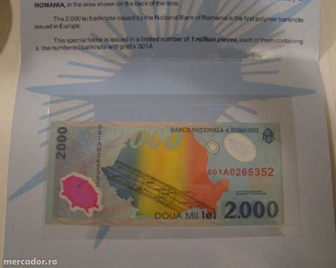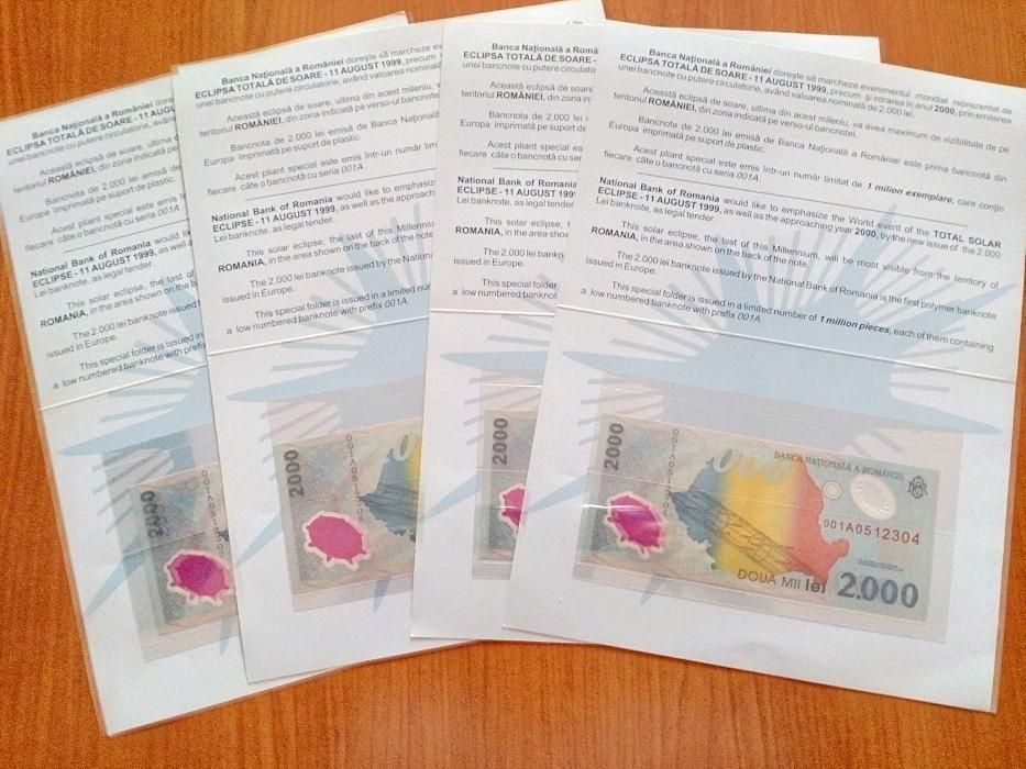 Banca națională a româniei a emis atunci o bancnotă specială, cea de 2000 de lei. 15 lei, vând bancnota de 2000 lei, cu eclipsa de soare din 1999, seria 006b. Banca naţională a româniei a emis atunci o bancnotă specială, cea de 2000 de lei. Mai mult decat atat, banca nationala a romaniei a emis atunci o bancnota speciala, cea de 2000 de lei, ceea ce a reprezentat o premiera. Bancnota de 2000 de lei a fost prima bancnotă cu polimeri emisă în românia, dar şi în europa.